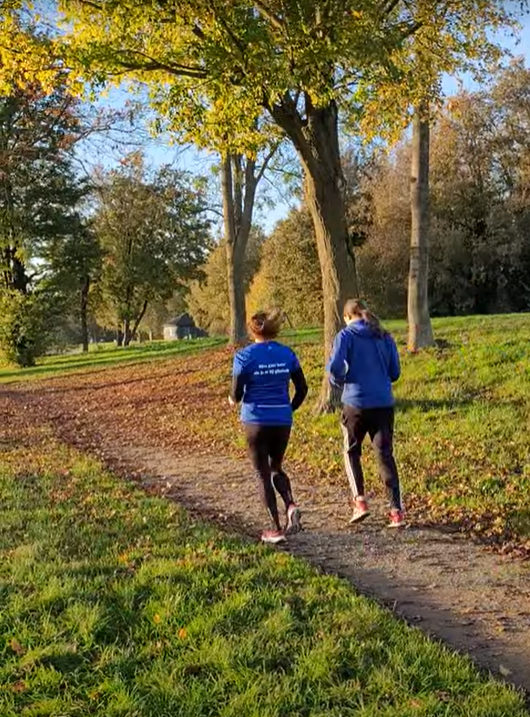 Laagdrempelige, rustige beweging zoals wandelen, rustig hardlopen, ademwerk, lichaamsgerichte oefeningen en ontspanning. Je leert opnieuw voelen en vertragen.